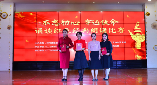 甘化公司人力資源部副經(jīng)理陸萍參加由江門(mén)市高新區(qū)(江海區(qū))火炬大廈黨建共同體、江門(mén)國(guó)家高新區(qū)光電行業(yè)協(xié)會(huì)主辦,江門(mén)市高新區(qū)(江海區(qū))稅務(wù)局第四黨支部、江門(mén)市江藝實(shí)業(yè)有限公司黨支部承辦的“不忘初心 牢記使命”誦讀紅色經(jīng)典朗誦比賽。經(jīng)過(guò)初賽、復(fù)賽多場(chǎng)激烈的角逐,于2019年10月18日的決賽中,她以紅色經(jīng)典作品《雪山小太陽(yáng)》榮獲二等獎(jiǎng)。