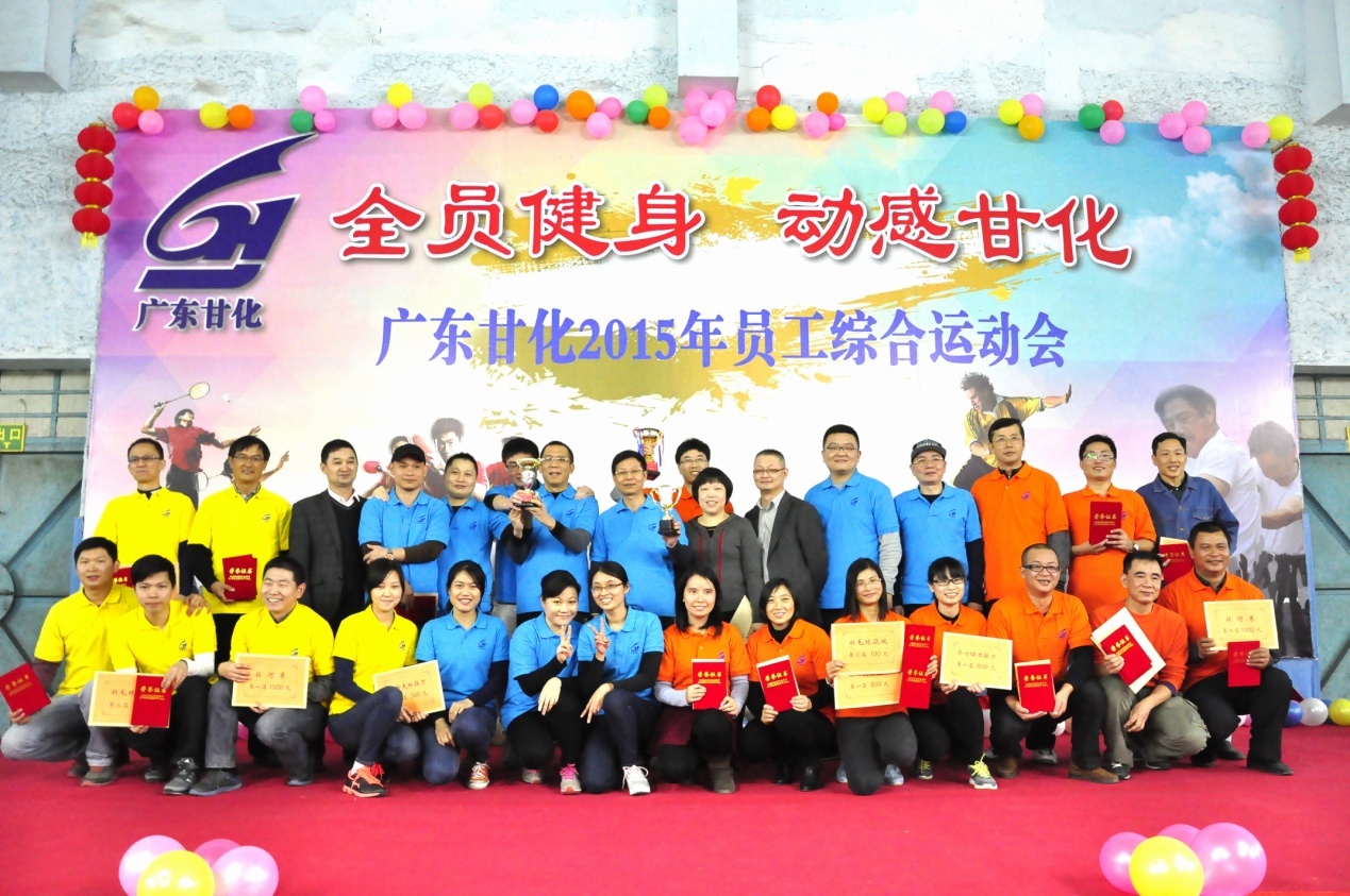 為加強企業文化建設,豐富員工文體生活,培育公司凝聚力、向心力,增添員工歸屬感和集體榮譽感,2015年11月下旬至12月中旬,甘化公司工會以“全員健身、動感甘化”為主題,舉辦廣東甘化2015年員工綜合運動會。此次運動會由公司本部、生物中心、德力光電3個代表隊共146名運動員參加。