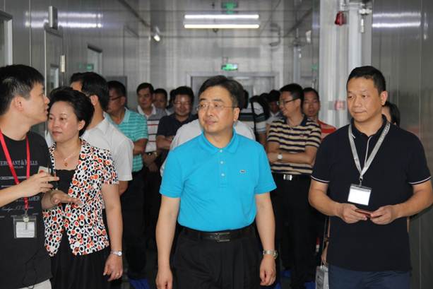 2015年10月26日下午,“臺山四大班子”到訪德力光電進(jìn)行調(diào)研工作。“臺山四大班子”在德力光電總經(jīng)理王非陪同下,先后參觀了外延片、芯片生產(chǎn)車間及展廳,王非總經(jīng)理進(jìn)行了詳細(xì)的講解。